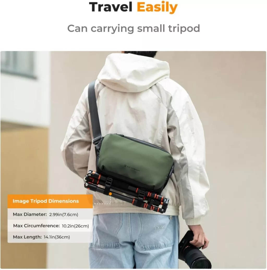 【Multiple Ways to Carry the Bag】A 33 * 22 * 15cm / 13.1 "* 8.8" * 6" méretű K&F Concept Alpha Camera Sling Bag 10L kapacitású, és könnyen befogad egy fényképezőgépet és két objektívet. Sokoldalú funkciójának köszönhetően ez a fényképezőgép hevederes táska használható válltáskaként, kereszttáskaként, deréktáskaként, melltáskaként vagy kézitáskaként.