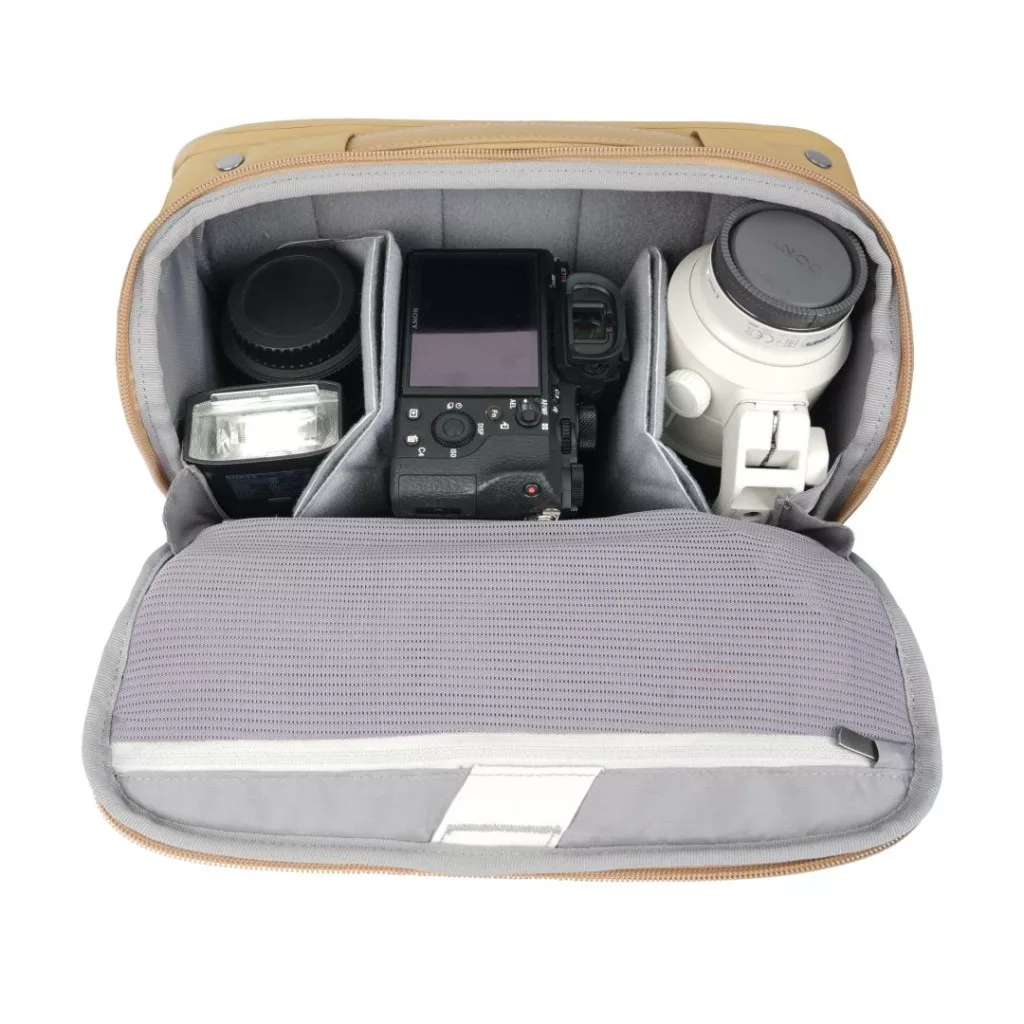 A fényképezőgép rekesz lehetővé teszi egy full-frame fényképezőgép és akár 2 objektív (24-70mm f2.8-ig), vagy egy kisebb drón szállítását, amelyeket karcsú EVA elválasztók választanak el, amelyeket úgy terveztek, hogy maximalizálják a rendelkezésre álló helyet, miközben védik a felszerelést. Az elválasztóelemeket a kívánt elrendezéshez igazíthatja, vagy eltávolíthatja őket, hogy egy mindennapi válltáskát hozzon létre. Élvezze a teljes hozzáférést a fényképezőgép rekeszhez a táska tetején keresztül, amely a maximális biztonság érdekében a testtől elfelé nyílik.