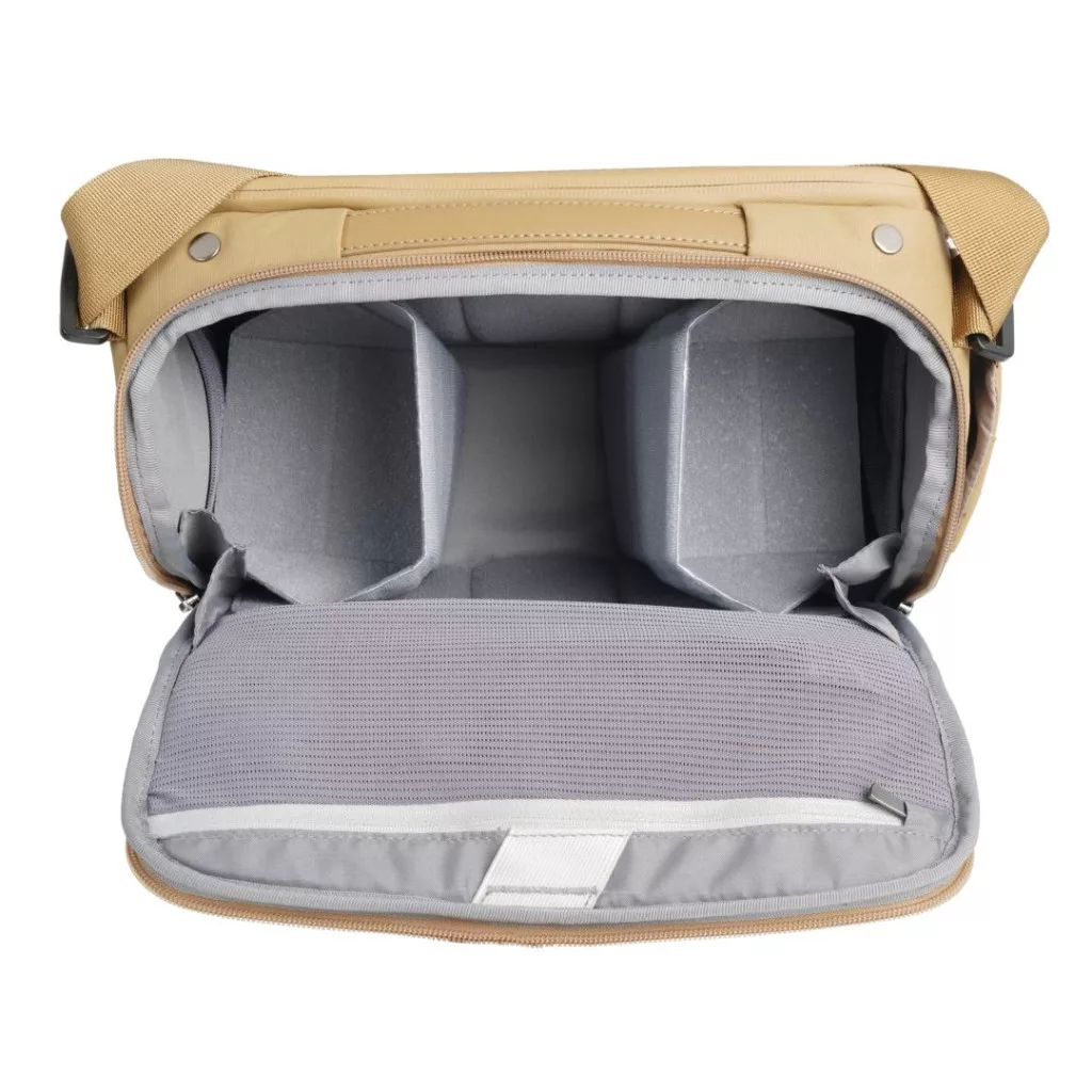 A fényképezőgép rekesz 300-340 mm széles, 200-230 mm magas és 120 mm mély. Ez lehetővé teszi egy teljes vázas fényképezőgép és akár 3 objektív (70-200mm f2.8-ig) vagy egy DJI Mavic készlet szállítását, amelyeket vékony EVA elválasztók választanak el, amelyeket úgy terveztek, hogy maximalizálják a rendelkezésre álló helyet, miközben védik a készletet. Ezek az elválasztók az Ön által kívánt elrendezéshez igazíthatók, vagy teljesen eltávolíthatók, hogy egy mindennapi válltáskát hozzanak létre. A kameraraktárhoz a táska tetején keresztül lehet hozzáférni, amely a maximális biztonság érdekében a testtől távolabbra nyílik.