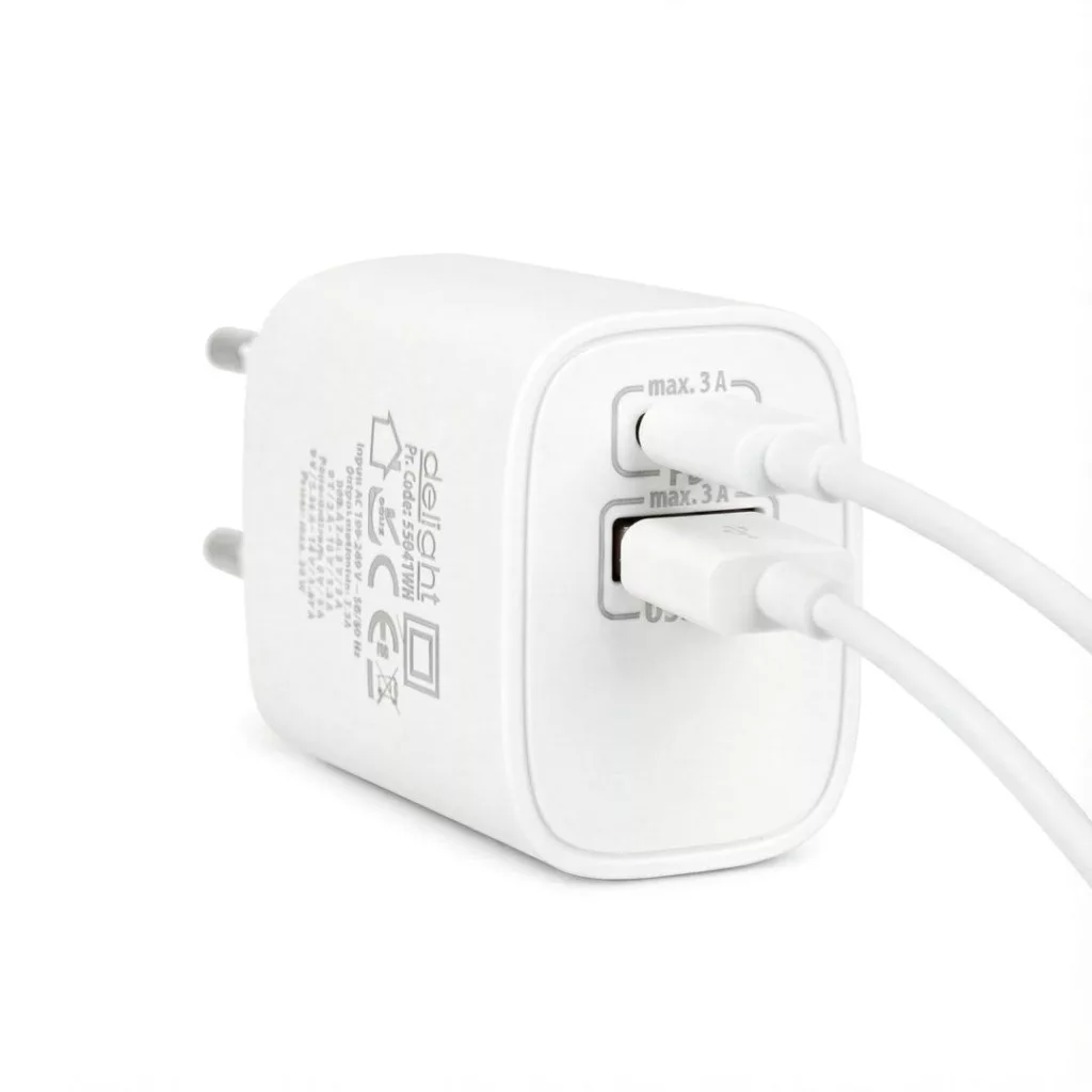 Adapter, 1xUSB-A, 1xUSB-C, 5V/9V/12V, 3A, 20W, PD, White