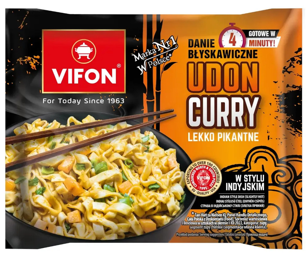 Összetevők: tészta (71,7%): BÚZAliszt, pálmazsír, keményítő, só, cukor, térfogatnövelő szerek: kálium-karbonátok, nátrium-karbonátok; stabilizátorok: cellulózgumi, guargumi; kurkuma, színezék: riboflavinok; szósz (27,8%): víz, finomított pálmaolaj, fehérítőszer (glükózszirup, pálmazsír, stabilizátorok: E 340, E 451; kazeinátok (TEJ), emulgeálószer: E 471, E 472e; csomósodást gátló anyag: E 551), cukor, curry fűszerkeverék (4%), pálmazsír, rómaikömény, só, ízfokozók: nátrium-glutamát, dinátrium-guanilát, dinátrium-inozinát; aromák, fokhagyma, kurkuma, színezék: paprikakivonat; chilipor, babérlevél, savanyúságot szabályozó anyag: citromsav; tartósítószerek: kálium-szorbát, nátrium-benzoát; bors; szárított zöldségek (0,5%): sárgarépa, metélőhagyma.