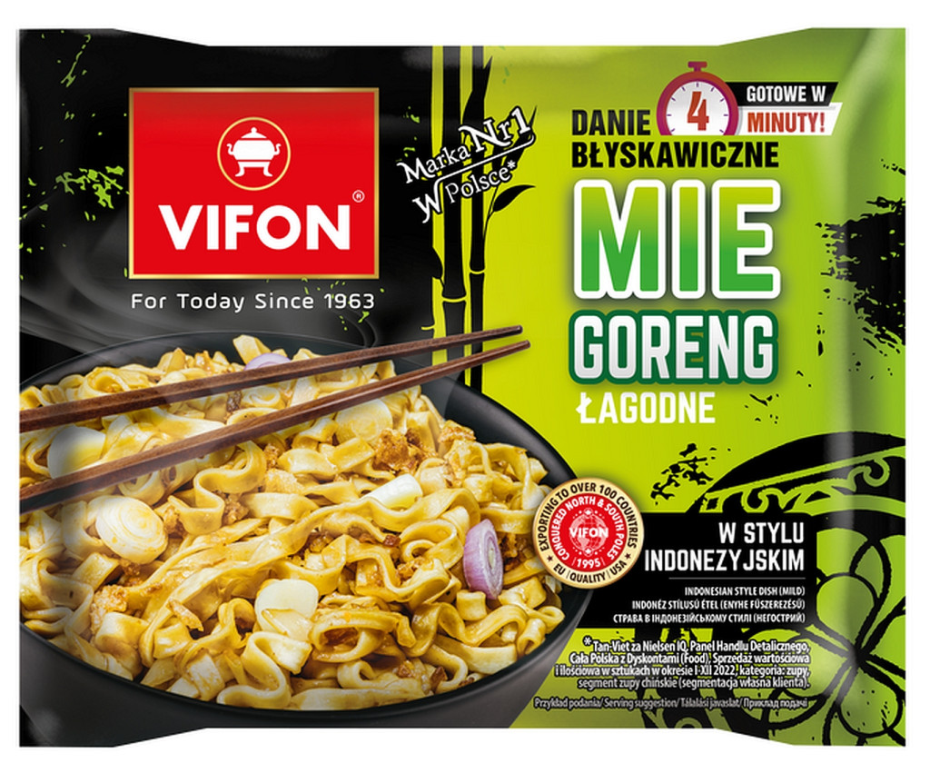 Összetevők: tészta (78,4%): BÚZAliszt, pálmazsír, keményítő, só, cukor, térfogatnövelő szerek: kálium-karbonátok, nátrium-karbonátok; stabilizátorok: cellulózgumi, guargumi; kurkuma, színezék: riboflavinok; szósz (11,1%): cukor, víz, chiliszósz (25%) (víz, cukor, chili, fokhagyma, só, keményítő, paradicsompüré, savanyúságot szabályozó anyagok: ecetsav, citromsav; tartósítószer: kálium-szorbát; aroma), SZÓJAszósz koncentrátuma (13,4%) (víz, SZÓJAliszt), keményítő, tartósítószerek: kálium-szorbát, nátrium-benzoát; edényalap (8,3%): finomított pálmaolaj, cukor, só, pirított mogyoróhagyma (10,4%), maltodextrin, SZÓJApasztapor (6,7%) (maltodextrin, SZÓJAbab paszta (SZÓJAbab, só, rizsliszt, BÚZAliszt), élesztőkivonat, hidrolizált SZÓJAfehérje, színezék: karamell, kevert fűszerek „öt ízű”, SZEZÁMolaj, csomósodást gátló anyag: szilícium-dioxid; ízfokozók: dinátrium-guanilát, dinátrium-inozinát; savanyúságot szabályozó anyag: almasav; pirított mogyoróhagyma (2,2%): pirított mogyoróhagyma, finomított pálmaolaj.