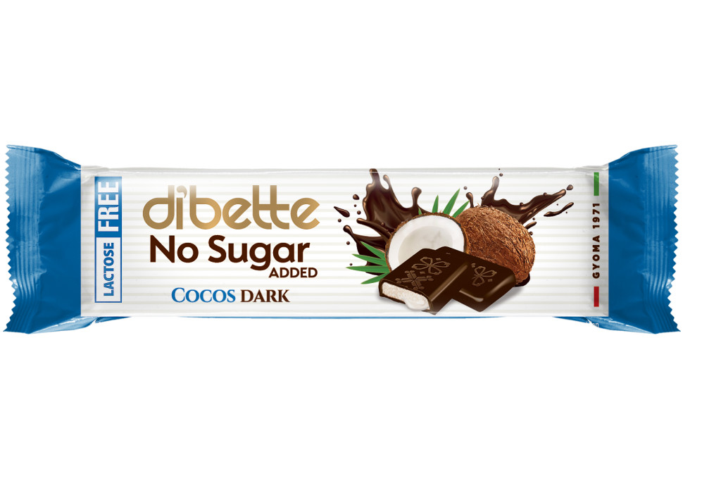DIBETTE NAS KÓKUSZ ÍZŰ KRÉMMEL TÖLTÖTT TEJCSOKOLÁDÉ HOZZÁADOTT CUKOR NÉLKÜL, ÉDESÍTŐSZEREKKEL 22G ERITRITTEL