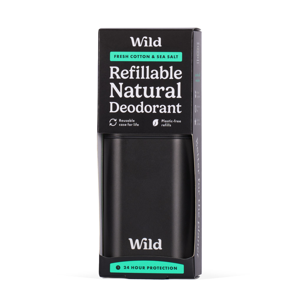 WILD kezdő csomag egy újratölthető trendi deo stift tartót és egy természetes deo stift utántöltőt tartalmaz. A tiszta és élénkítő illat prémium természetes összetevőkkel egész napos védelmet biztosít.