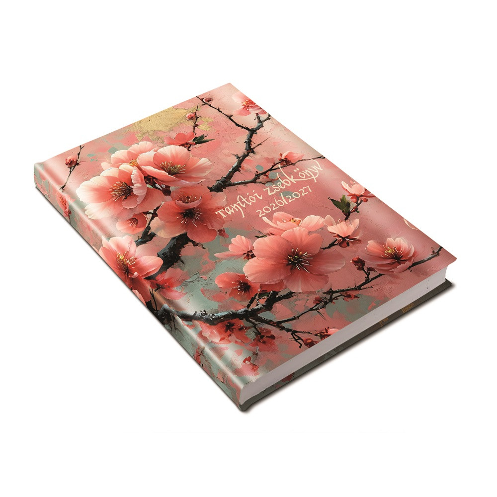 TANÍTÓI ZSEBKÖNYV A5, MŰBŐR 145MMX205MM, FEHÉR LAPOKKAL CSERESZNYEVIRÁG 2026/2027 REALSYSTEM