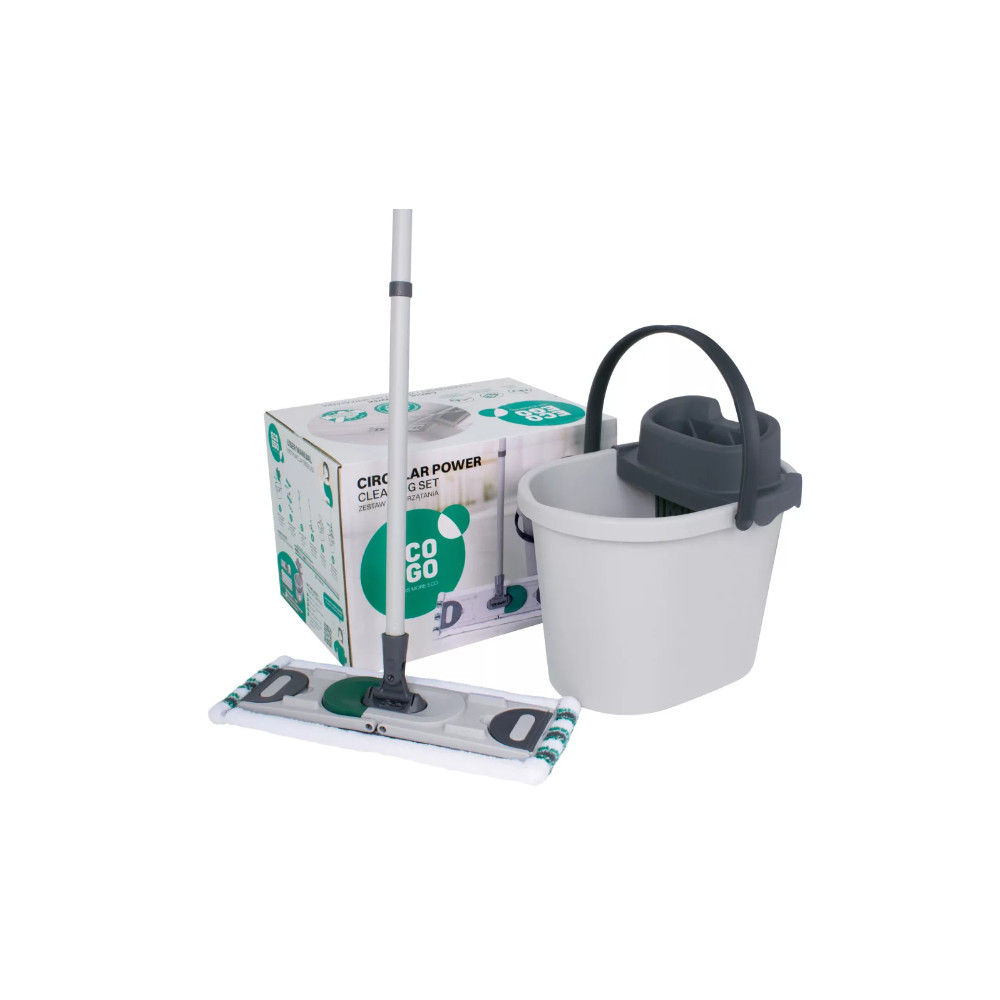 A CIRCULAR POWER készlet négy elemből áll: vödör, prés, egy lapos felmosó és egy menetes nyél. Az univerzális és funkcionális felmosóval bármilyen felületet – panelek, finom parketta, csempe, linóleum és természetes kő – tisztítható. Minden elem elfér egy vödörben, és egy kis tárolórekeszben vagy szekrényben tárolható.